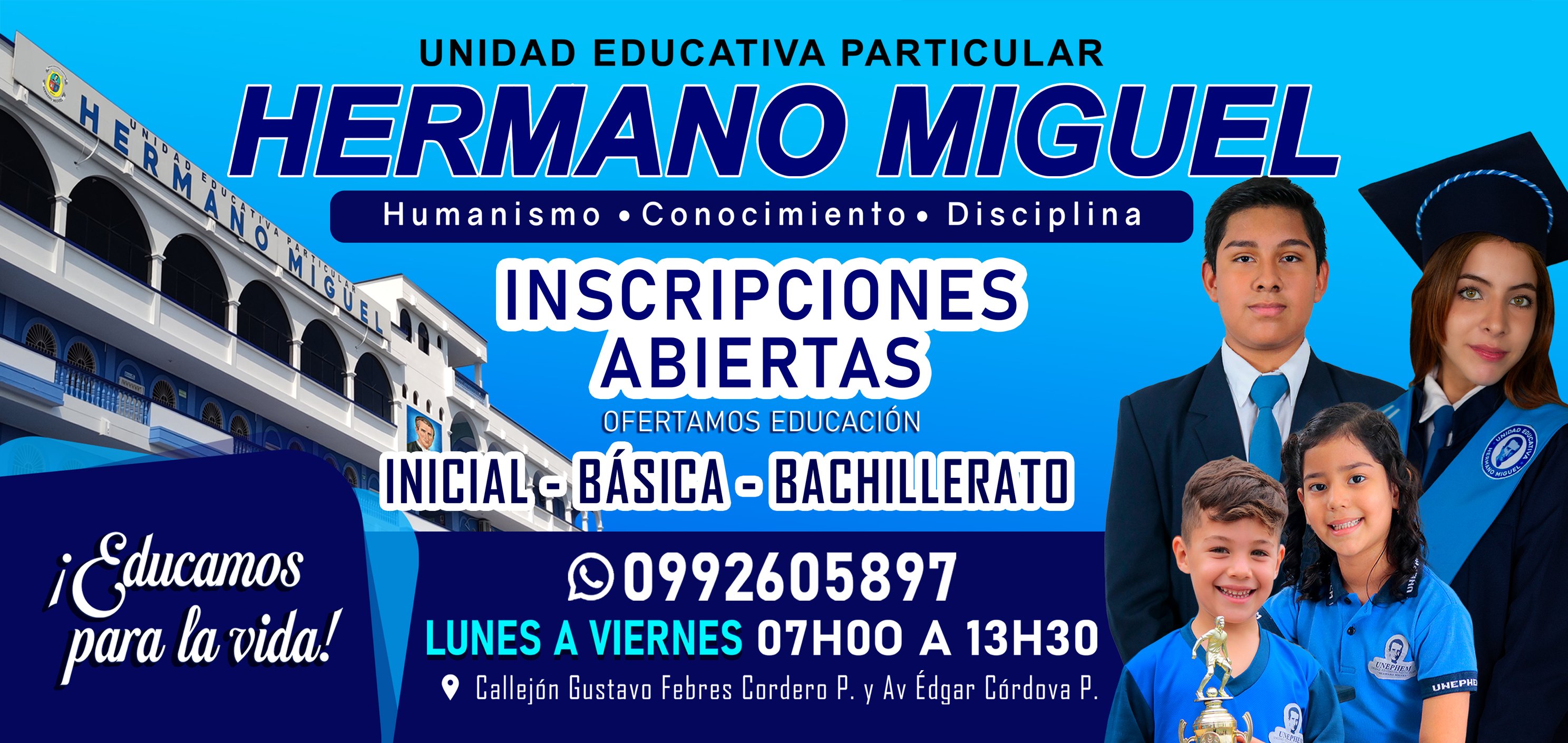 La Unidad Educativa Hermano Miguel forma estudiantes con sólidos valores humanos, compromiso académico y preparación para la vida.